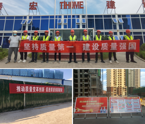 在施工现场、办公区域、主要道路出入口,悬挂横幅、标语,并制作展板,营造人人关注质量、重视质量、追求质量的质量文化氛围。