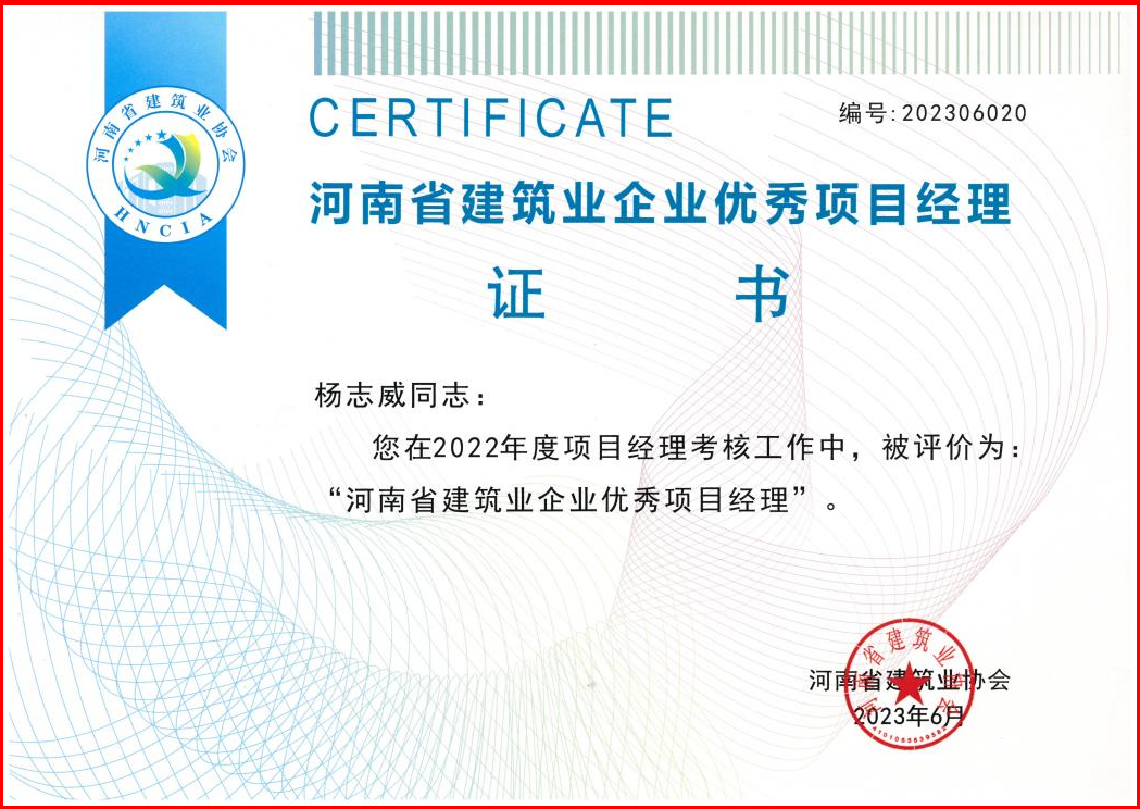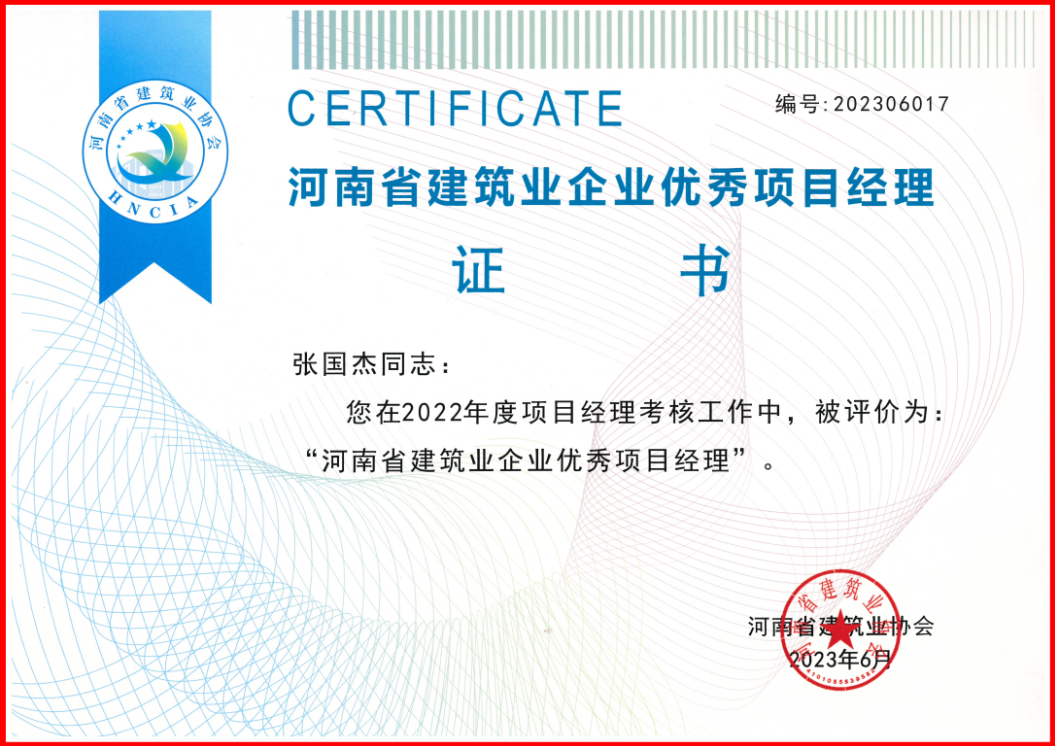 近日,泰宏建设再次被河南省建筑业协会评为“2022年度河南省建筑业诚信典型企业”,李守坤同志荣获“2022年度河南省建筑业企业优秀总工程师”,赵建国、张国杰、原志伟等6位同志荣获“河南省建筑业企业优秀项目经理”荣誉称号。