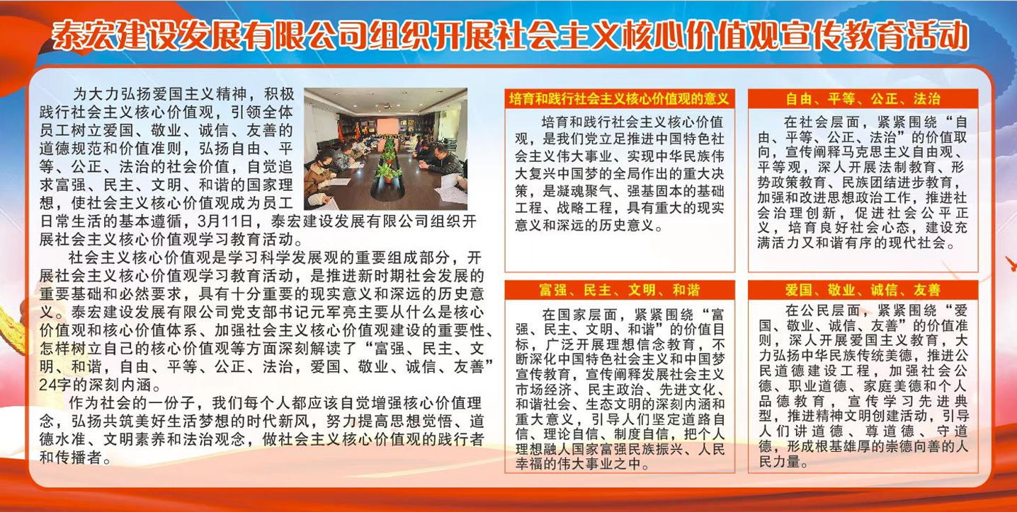 文明单位的创建过程不仅仅是企业氛围、职工文化素养的优化提升,也是一次把社会主义核心价值观融入职工内心的过程。为努力实现个人成长和公司发展有机统一打下了坚实基础,也为泰宏建设转型发展提供了坚强的思想保障和强大的精神支撑。